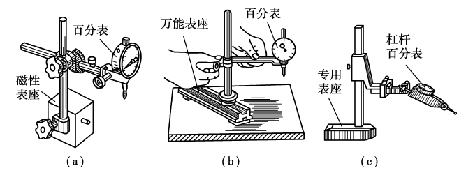 (a)用磁性表座安装百分表(b)用万能表座安装百分表(c)用专用表座安装杠杆百分表