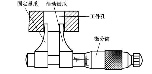 图4.22 内测千分尺的结构和测孔径