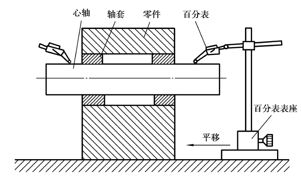 图4.30 测量零件孔的轴线对底面的平行度及平行度