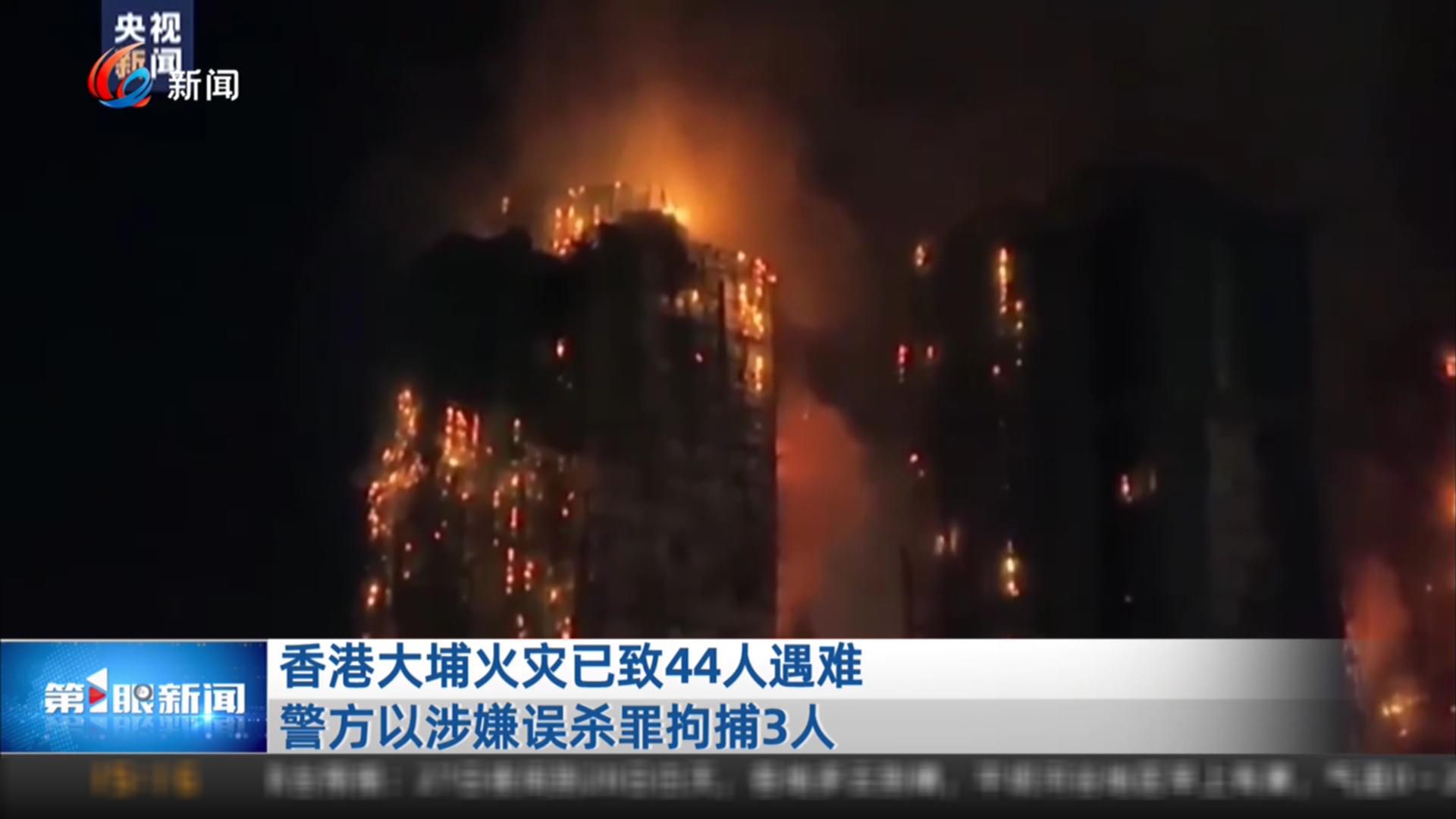 香港大埔火灾已致44人遇难 警方以涉嫌误杀罪拘捕3人