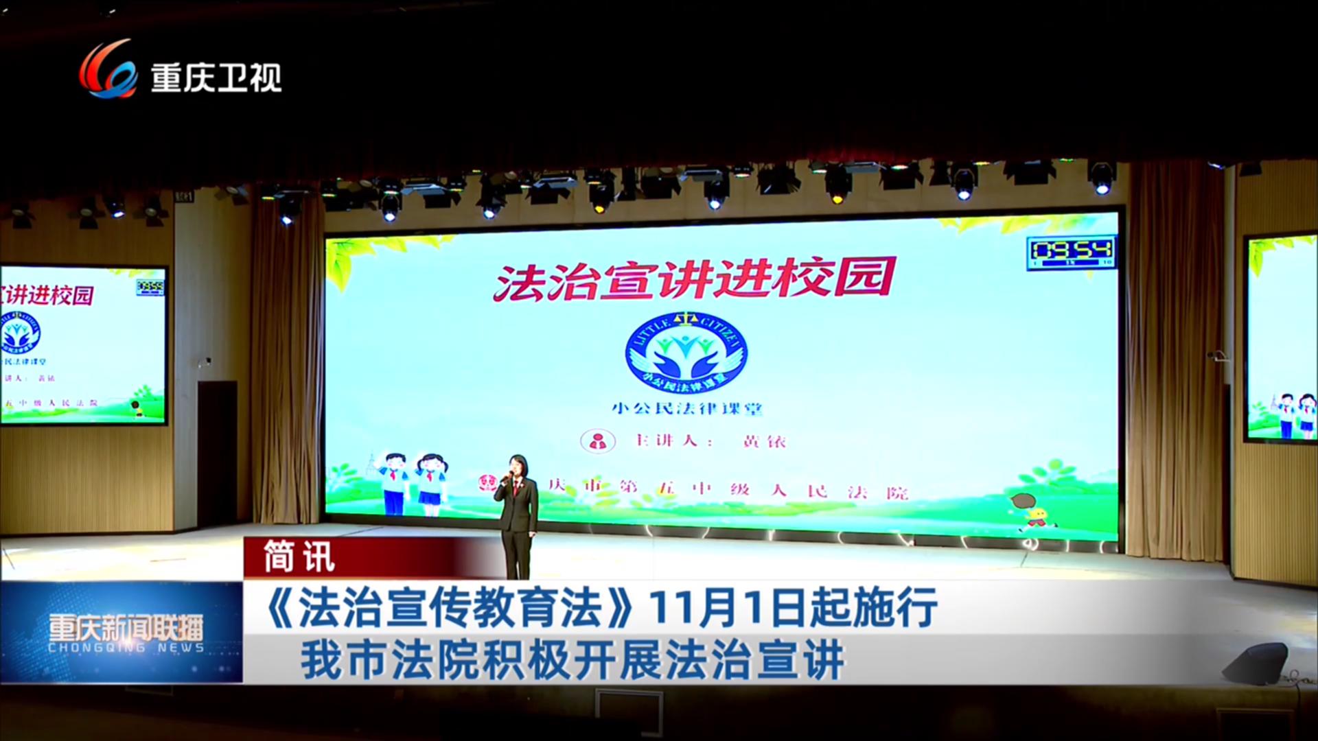11月1日起正式施行的《中华人民共和国法治宣传教育法》确立了公民终身法治教育制度。重庆法院举行法治宣讲比赛,组织“小公民法律课堂”的讲师,围绕未成年人权益保护、预防青少年犯罪、校园安全、电信网络诈骗等热点主题,为师生们带来“看得见、听得懂、能吸收”的法治宣讲。