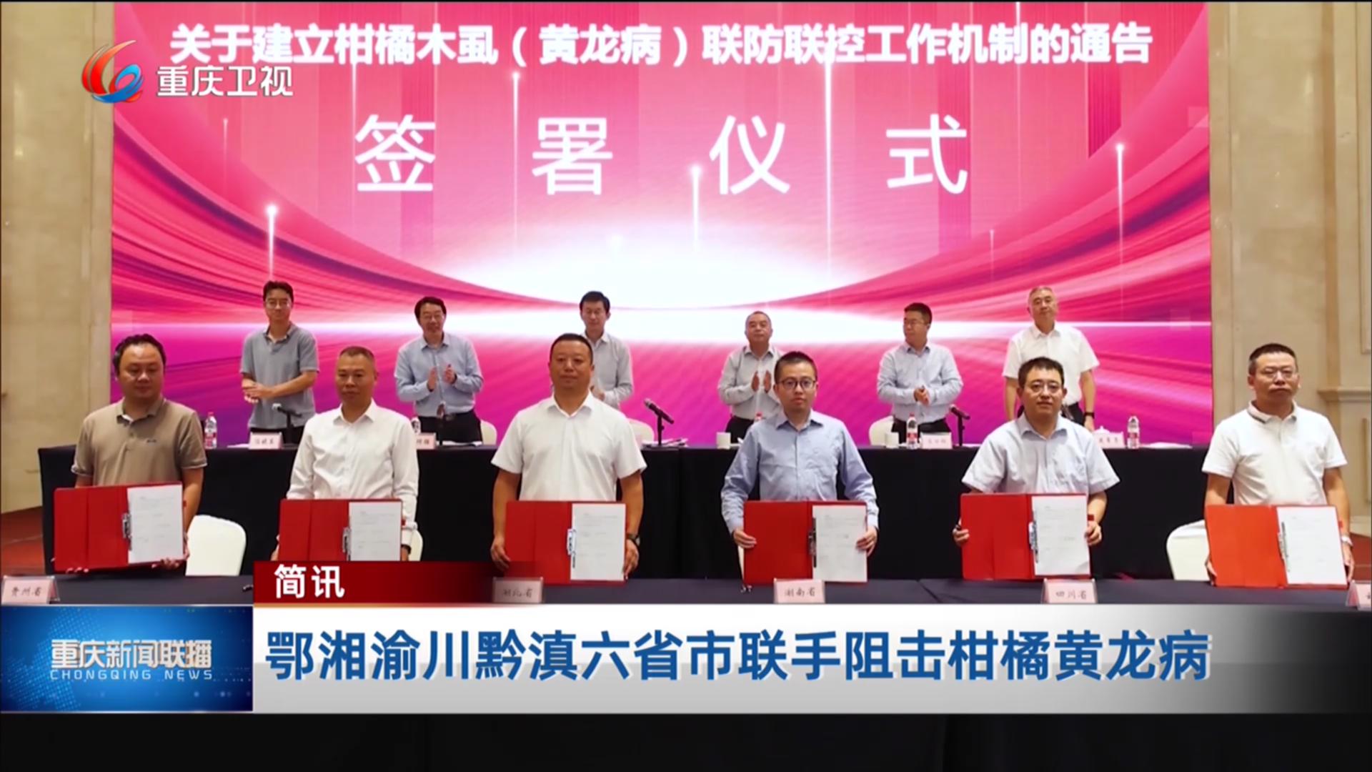 鄂湘渝川黔滇六省(市)代表近日在潼南签署协议,将以柑橘木虱,也就是黄龙病防治为重点,探索建立区域信息调度平台,加快形成信息互联互通、工作步调协同、防控标准一致的联防联控机制。