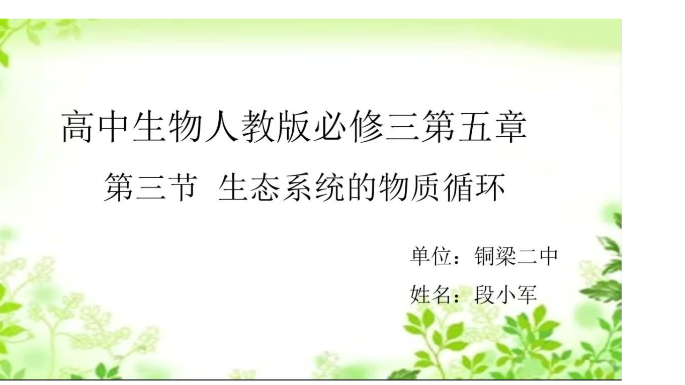 【人教版 生物 必修3】《生态系统的物质循环》(铜梁二中 段小军)