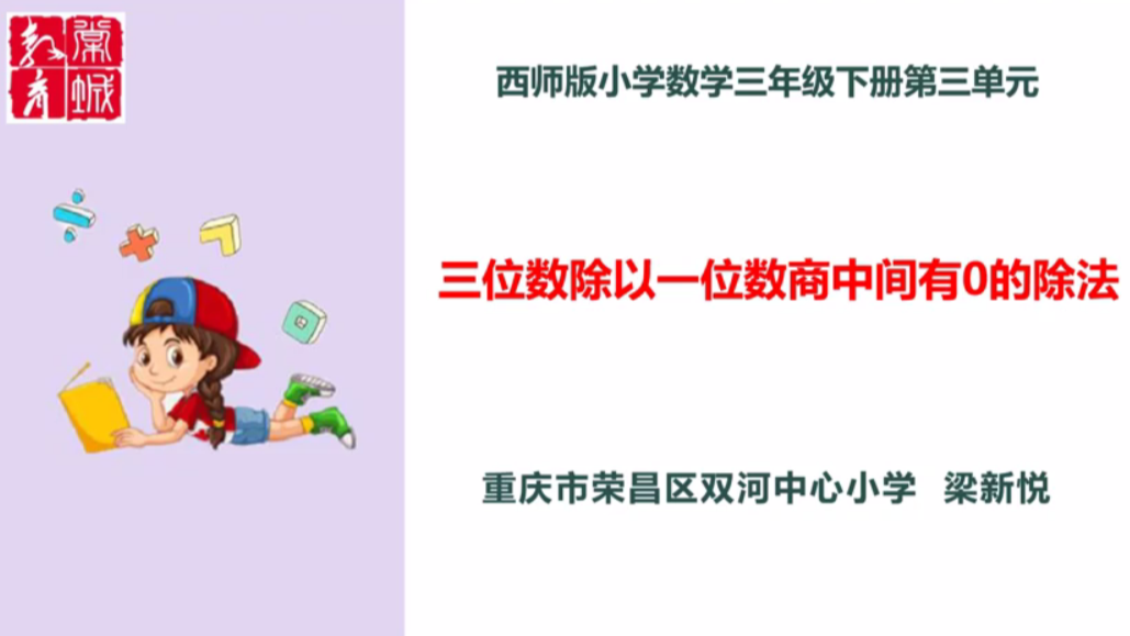 【三年级 数学】《三位数除以一位数 商中间有0的除法》(重庆市荣昌区双河中心小学 梁新悦)