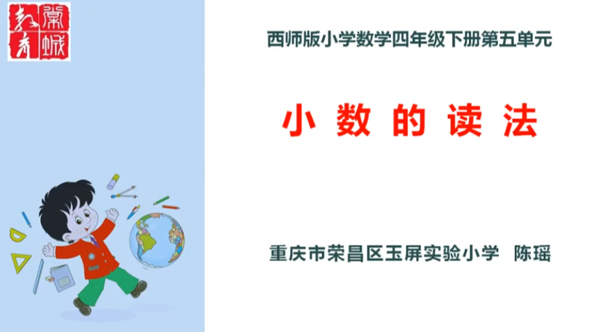 【四年级下册 数学】《小数的读法》(重庆市荣昌区玉屏实验小学 陈瑶)