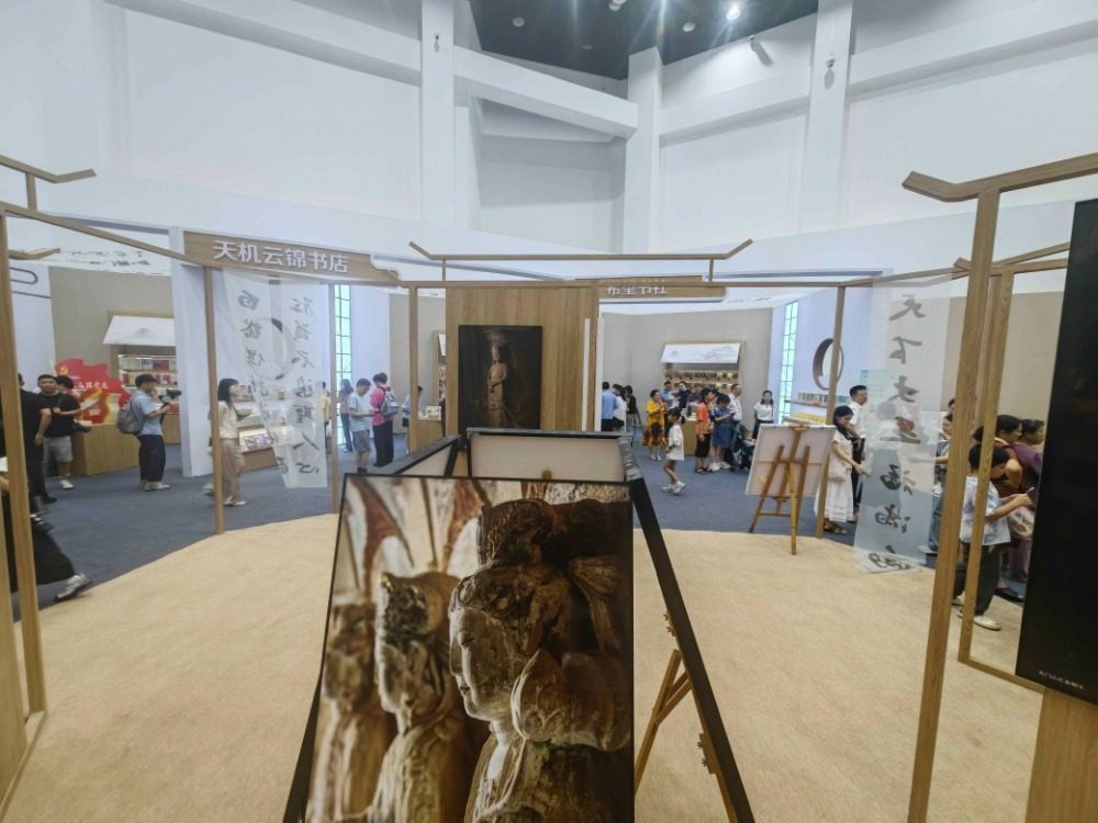 7月25日,第33届全国图书交易博览会大足分会场于大足石刻宝顶山景区游客中心盛大启幕。分会场以“石刻入卷,数字焕新”为主题,以“源”“新”“智”“创”“惠”为引领,以书籍为媒,将千年石刻的文化底蕴与当代艺术创作、数字科技、惠民服务交织融合,在南书局及联动设置的“巴渝书市”空间内,构建起一个多维沉浸的文化场域,生动呈现大足石刻保护传承的新成果与新闻出版事业的蓬勃发展。