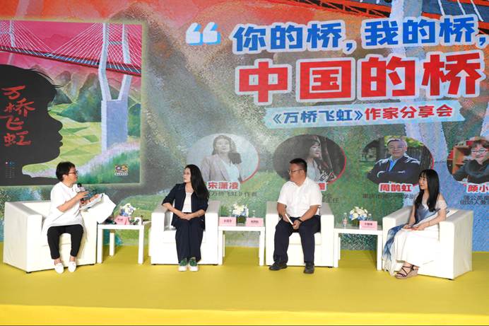 在随后举办的《万桥飞虹》作家分享会上,蒲公英童书馆创始人兼总编辑颜小鹂与《万桥飞虹》作者宋潇凌、重庆市作家协会儿童文学创委会主任李姗姗、重庆市第一中学副校长周鹊虹等嘉宾共同分享了与《万桥飞虹》相关的创作故事、出版历程以及阅读感悟。