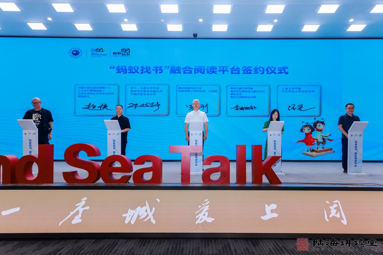 值得一提的是,在本期“陆海讲读堂”活动现场举行“蚂蚁找书”融合阅读平台签约仪式。据了解,该平台由中共重庆市委宣传部、重庆市新闻出版局、重庆市全民阅读活动办公室指导,重庆新华出版集团主办,重庆陆海传媒有限公司承办,旨在以蚂蚁般汇聚力量,以点滴的努力推动阅读的风尚,让经典融入日常。
