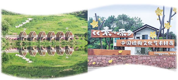 图为素心村露营基地(左)与“蜡梅墙”。资料图