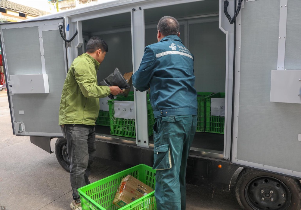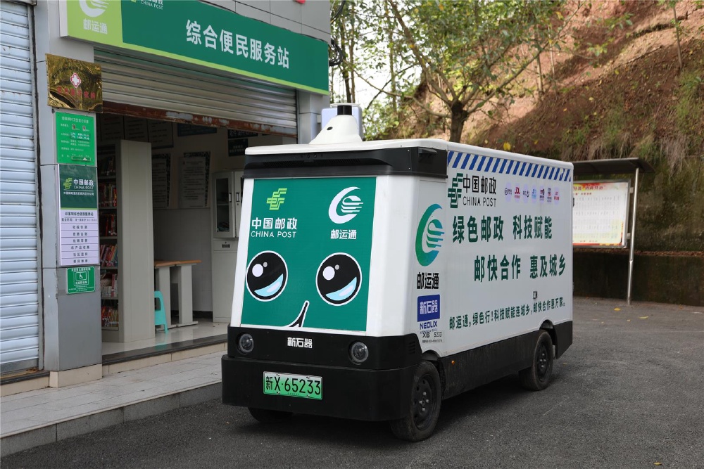 “为提升配送效率,线路整合‘三通一达一兔’及顺丰、京东等7家社会快递公司资源,通过统一的无人车投递体系进行配送,单次承载量可达1000公斤,较传统人工投递时效提升约30%。”据巴南邮政渠道平台部副经理付光勇介绍,无人快递车具备自主导航、智能避障、实时定位等核心功能,能灵活适配乡村复杂路况,且后台工作人员可根据实际需求增设快递送达点,以此改变乡村“快递进村难”的现状,让村民足不出村就能享受到便捷的寄递服务。