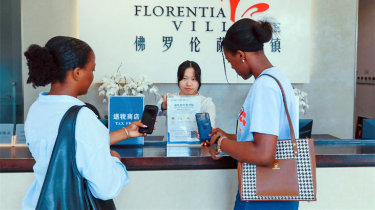 目前,境内外银行卡刷卡、移动扫码支付、现钞支付实现重点商圈、重点场所、重点商务100%全覆盖;同时通过推进离境退税“即买即退”试点,境外旅客离境退税、办理退税金额快速增长;2024年,还获批首家市内免税店,专门面向60天内将出境的旅客售卖免税商品。