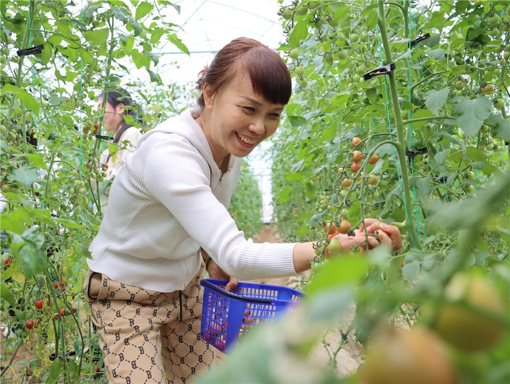 走进大中村的采摘园,一股暖意扑面而来,标准化种植大棚内绿意盎然,藤蔓间缀满了饱满鲜润的果实,成为春日里最动人的景致。市民游客三五成群,有的提着小篮子穿梭在田埂间,小心翼翼地挑选着成熟的小番茄;有的驻足辣椒、茄子种植区,不时与身边的家人朋友交流采摘技巧,尽情感受农耕的乐趣,欢声笑语回荡在田间地头。