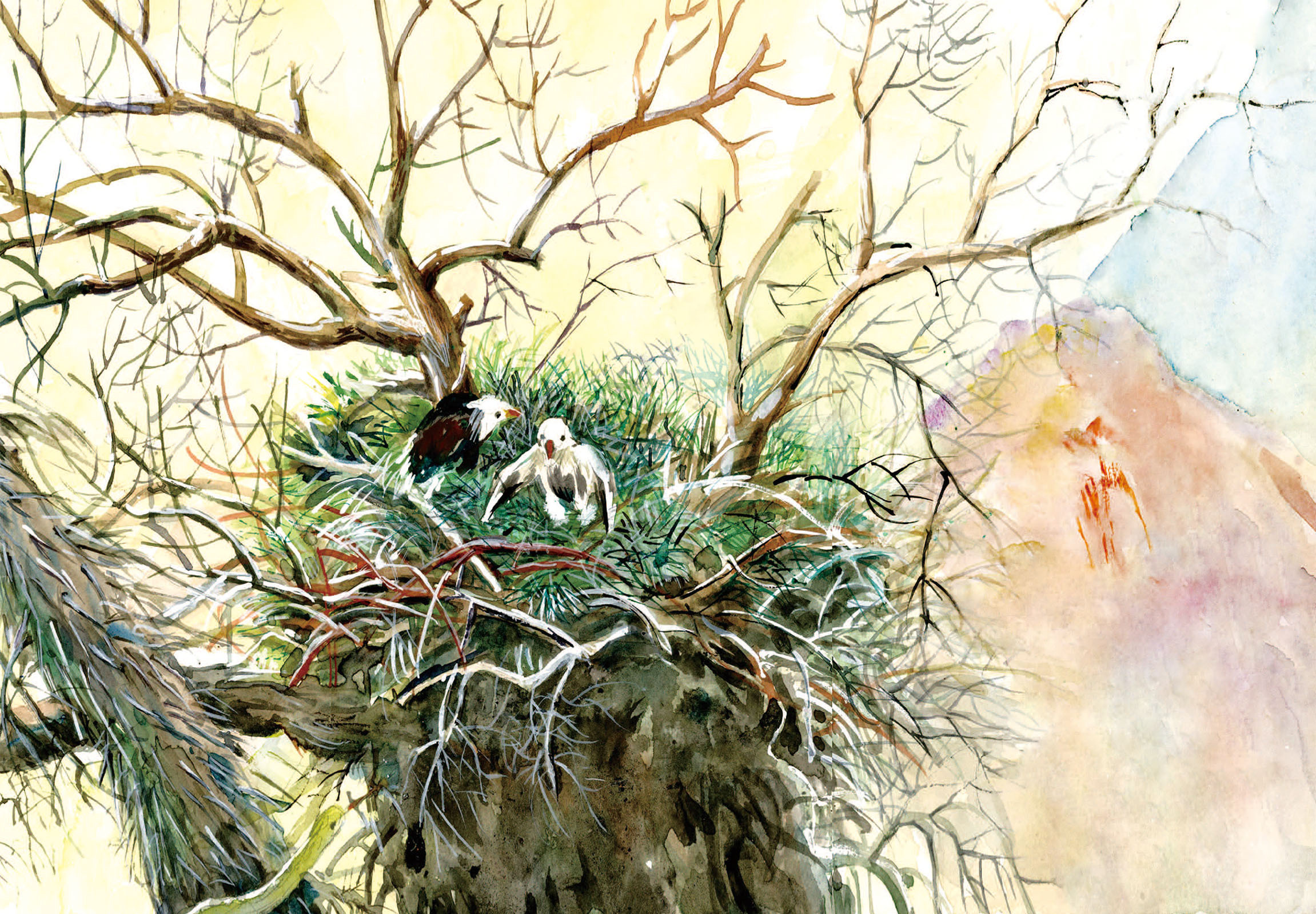 就在它想入非非的时候,巡逻的金雕已围着树干在转悠。