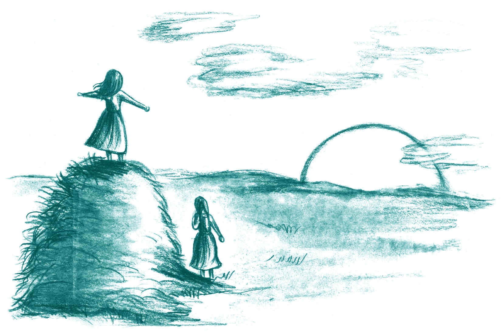 除了蓝蓝的天,没有任何东西比罗兰更高啦。风在吹着,绿油油的大草原一望无际。罗兰张开双臂,蹦跳起来,草堆又把她高高弹起。