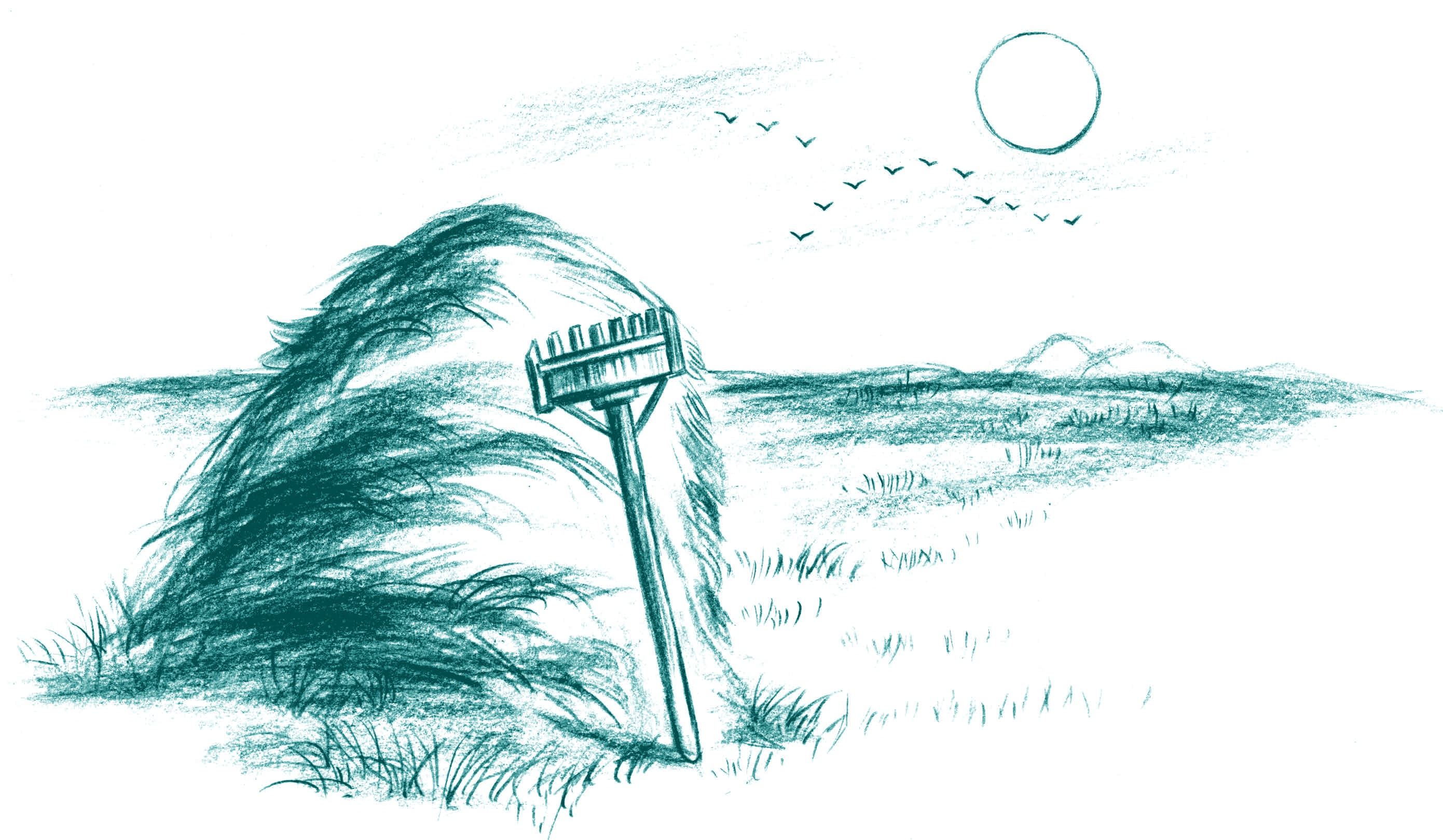 接下来的每天早上,他都要到小溪对岸的平地上去干活儿。他割下大草原上的草,让它们在阳光下晒干,然后用木耙子把草耙成一堆一堆的。他把皮皮和亮亮套到车上,把干草拖回来,总共堆了六个大草堆。