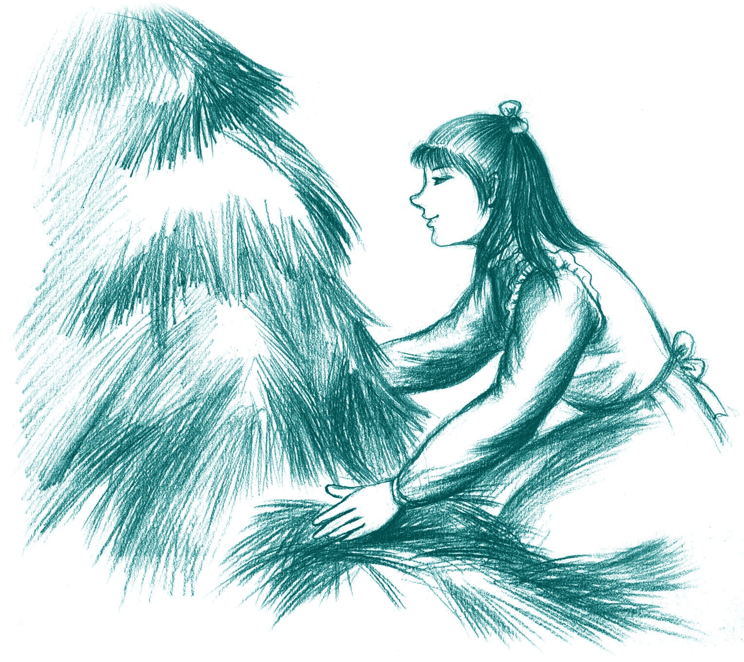 在草堆上打滚真是太好玩啦,比滑下来更好玩。她们爬上去又滚下来,再爬上去又再滚下来,笑得一次比一次响亮。越来越多的草随着她们散落下来。她们在草堆里走啊,踩啊,滚啊,爬上去又滚下来,到最后,麦草全部垮塌下来,再没什么可爬的啦。