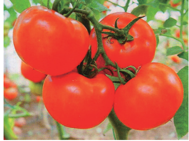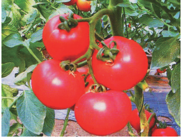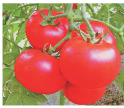 (8)美丽莎 青岛市农业科学研究院培育的一代杂种(图1-10)。无限生长类型,大果型,果色红艳,圆整,大小均匀,无棱,果皮光滑,无青肩,总状花序。每穗可坐果6~10果,每穗留果4个,平均单果重150~180克,可溶性固形物含量4.8%。抗黄瓜花叶病毒和番茄花叶病毒,抗枯萎病、根结线虫病,中抗青枯病。每亩产量可达10000千克,条件好的温室可达15000千克。果实硬度大,耐贮运,室温(25℃)下贮放时间15~30天。适宜春、秋保护地、露地栽培。