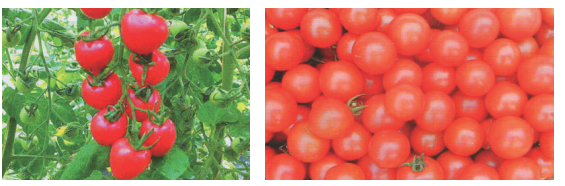 (4)圣女 农友种苗(中国)公司培育(图1-24)。无限生长型,早熟。植株高大,叶片较稀疏,每个花序最多可结果60个,单果重14克。果实椭球形,似枣,果面红亮,含糖量10%,果肉多,脆嫩,种子少,不易裂果,风味好。耐热,耐病毒病、叶斑病、晚疫病,特别耐贮运。适于全国各地露地和保护地栽培。