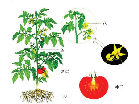 番茄的植株由根、茎、叶、花、果实及种子六部分组成(图1-1)。