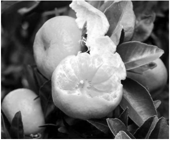 沃柑是中国柑橘研究所于2004年从韩国引进的杂交柑品种,经过在云南、四川等地试种观察后,其表现出树势强健,果实外形美观、漂亮,果汁多、味甜、化渣,晚熟、早结丰产,采收时间长,适应性广等优良特点。其果型端正、扁圆形、果实中等大小,一般单果重平均130克左右,可溶性固形物可达13%,果实成熟期为翌年的1-3月(图1-8)。