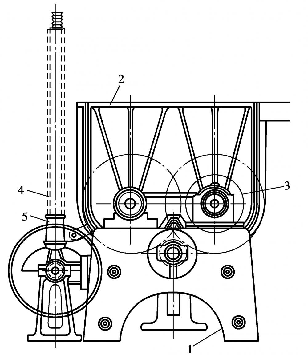 搅拌器3有左右两只,一只较快,另一只较慢,两者回转方向相反,搅拌器每分钟约15~30转,升降螺杆每分钟24转。每台机每班可洗面粉35袋(每袋40斤),电动机功率约为4千瓦。