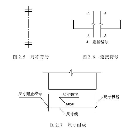(4)对称符 号对称符号表示两侧的部位,其状态、尺寸完全对称,只需绘出一半即可,如图2.5所示。